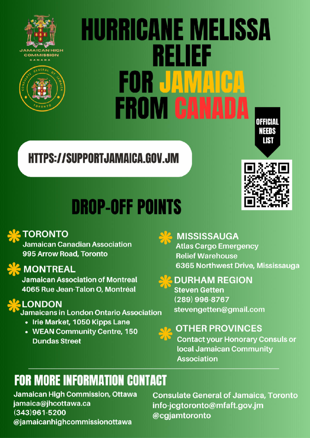 Beacon Catalyst has partners with several small businesses to increase the number of accessible drop-off points across Peel.You can drop-off donations to these business during their regular business hours. Once a week - Beacon Catalyst will transport all donations to Atlas Cargo (Mississauga) who is a freight company coordinating with Jamaica ODPEM to ensure the supplies to the several relief centers across the island.If you are doing a large drop-off, please call the business to ensure they have space, so we can coordinate pick-up sooner if needed.No donation is too small!